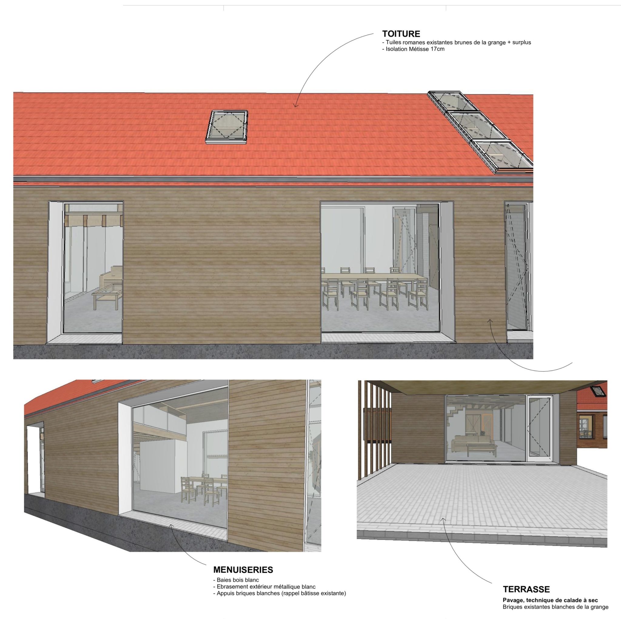 Le foyer souhaite rénover son habitat en conservant les aspects vernaculaires du corps de ferme.